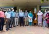 गुमान सिंह डामोर द्वारा डॉक्टरों का सम्मान कर मरीजो को फल बिस्कुट वितरण किए
