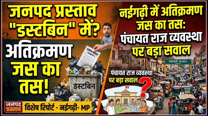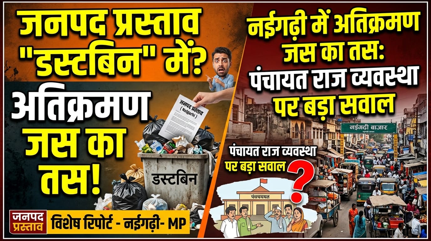 मऊगंज/नईगढ़ी (कुंडेश्वर टाइम्स) एक तरफ सरकार द्वारा राजस्व महा अभियान चलाकर लंबित प्रकरणों के त्वरित निराकरण के दावे किए जा रहे हैं, वहीं दूसरी ओर जमीनी हकीकत इन दावों की पोल खोलती नजर आ रही है। जनपद पंचायत नईगढ़ी की भूमि पर वर्षों से चला आ रहा अतिक्रमण अब भी यथावत है, जबकि इसे हटाने के लिए सामान्य सभा द्वारा पारित प्रस्ताव तक का पालन नहीं हो सका है।