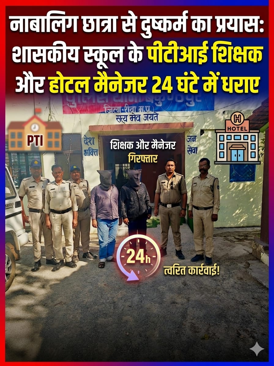 नाबालिग छात्रा से दुष्कर्म का प्रयास: शासकीय स्कूल के पीटीआई शिक्षक और होटल मैनेजर 24 घंटे में धराए कुंडेश्वर टाइम के लिए प्रेम तिवारी की रिपोर्ट