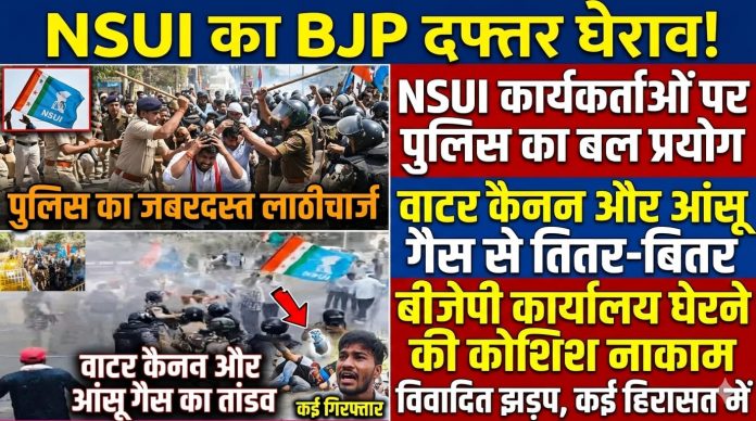 बीजेपी कार्यालय घेरने निकले NSUI कार्यकर्ताओं पर पुलिस का बल प्रयोग: वाटर कैनन और आंसू गैस से तितर-बितर, कई हिरासत में। कुंडेश्वर टाइम के लिए प्रेम तिवारी की रिपोर्ट