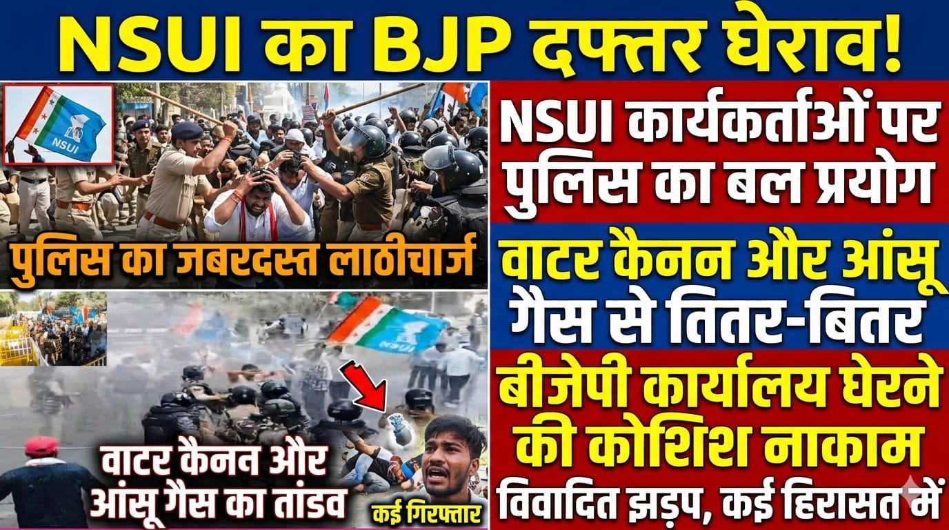 जानकारी के अनुसार सोमवार दोपहर एनएसयूआई के सैकड़ों कार्यकर्ता एकत्रित होकर विरोध मार्च निकालते हुए भारतीय जनता पार्टी कार्यालय के घेराव के लिए निकले थे। प्रदर्शनकारी हाथों में संविधान की प्रतियां और तख्तियां लेकर नारेबाजी करते हुए आगे बढ़ रहे थे। संगठन का आरोप है कि केंद्र और प्रदेश सरकार की नीतियों के कारण छात्रों और युवाओं को गंभीर समस्याओं का सामना करना पड़ रहा है।