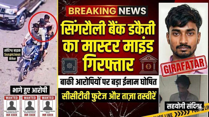 सिंगरौली में बैंक में लूट की वारदात करने वाले आरोपियों पर डीजीपी कैलाश मकवाना ने 50 हजार रुपये का इनाम रखा है। जो भी कोई आरोपी की सूचना देता है तो उसे यह इनाम दिया जाएगा।