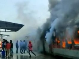 रेलवे स्टेशन पर खड़ी ट्रेन अचानक धू धू कर जलने लगी,मधुबनी रेलवे स्टेशन पर खड़ी स्वतंत्रता सेनानी एक्सप्रेस ट्रेन में लगी भीषण आग