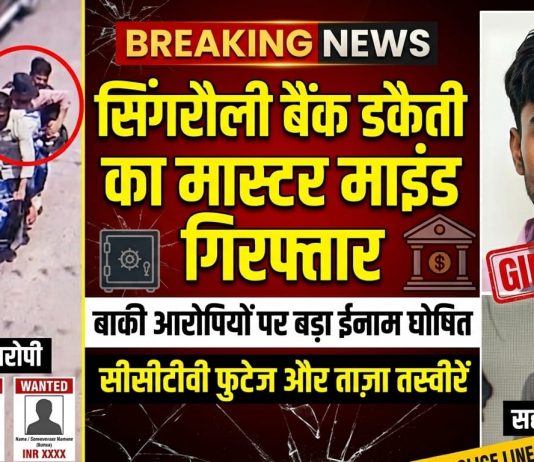 सिंगरौली में बैंक डकैती की वारदात का मास्टमाइंड बिहार से गिरफ्तार, कैश और सोना भी मिला; बाकी आरोपियों की तलाश जारी। कुंडेश्वर टाइम्स प्रदेश...
